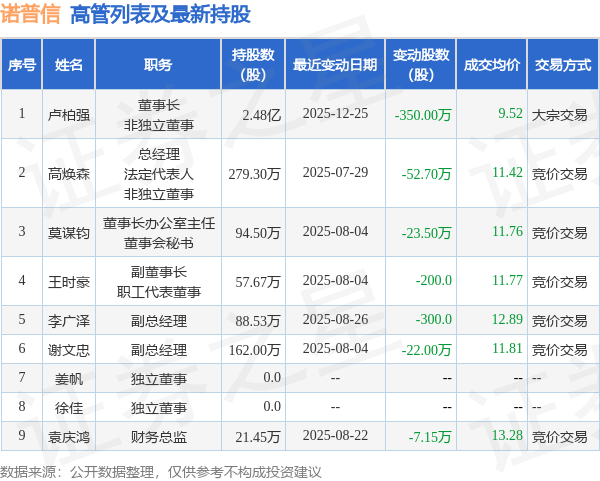 证券之星消息,根据12月29日市场公开信息、上市公司公告及交易所披露数据整理,诺普信(002215)最新董监高及相关人员股份变动情况:2025年12月26日公司董事卢柏强共减持公司股份255.0万股,占公司总股本为0.2537%。变动期间公司股价上涨0.63%,12月26日当日收盘报11.11元。