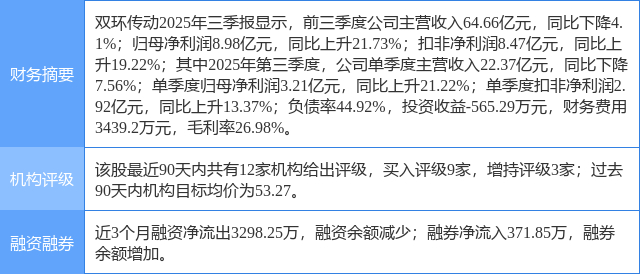 2025年10月30日,东吴证券研究员黄细里,刘力宇发布了对双环传动的研报《2025年三季报点评:2025Q3业绩符合预期,电驱齿轮龙头持续成长》,该研报对双环传动给出“买入”评级。证券之星数据中心根据近三年发布的研报数据计算,该研报作者对此股的盈利预测准确度为88.56%。
