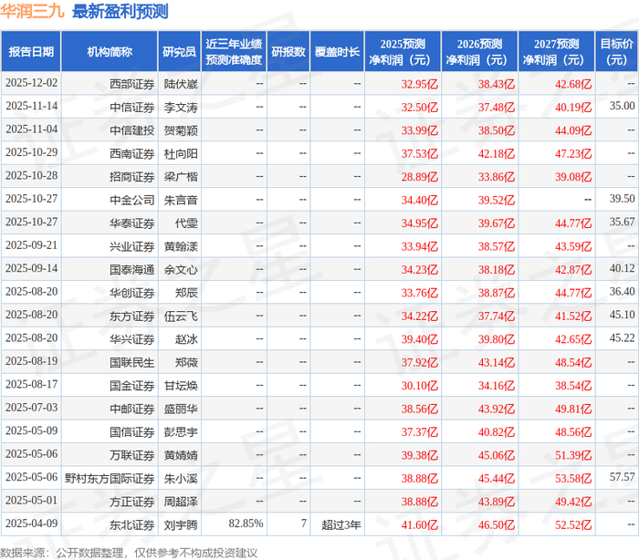 中邮证券有限责任公司盛丽华,龙永茂近期对华润三九进行研究并发布了研究报告《品牌力持续彰显,战略融合不断深化》,给予华润三九买入评级。