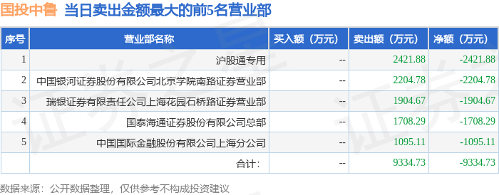 证券之星消息,沪深交易所2025年12月31日公布的交易公开信息显示,国投中鲁(600962)因有价格涨跌幅限制的日收盘价格跌幅偏离值达到7%的前五只证券登上龙虎榜。此次是近5个交易日内第1次上榜。