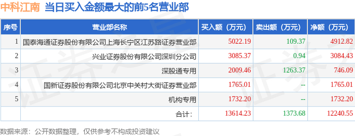 证券之星消息,沪深交易所2025年12月31日公布的交易公开信息显示,中科江南(301153)因日涨幅达到15%的前5只证券登上龙虎榜。此次是近5个交易日内第1次上榜。