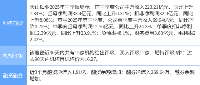 2025年10月29日,开源证券研究员孙二春,温佳贝发布了对天山铝业的研报《公司信息更新报告:Q3业绩表现亮眼,成长与红利兼具》,该研报对天山铝业给出“买入”评级。证券之星数据中心根据近三年发布的研报数据计算,该研报作者对此股的盈利预测准确度为94.61%。