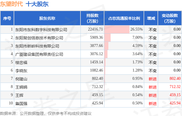 根据东望时代2025年三季报公布的十大股东详情如下: