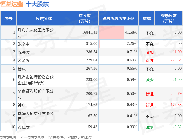 根据恒基达鑫2025年三季报公布的十大股东详情如下: