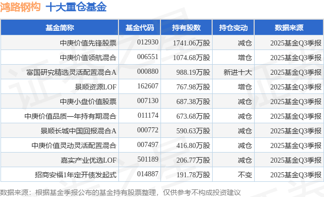 重仓鸿路钢构的前十大公募基金请见下表: