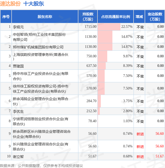 根据速达股份2025年三季报公布的十大股东详情如下: