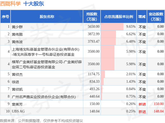 根据西陇科学2025年三季报公布的十大股东详情如下: