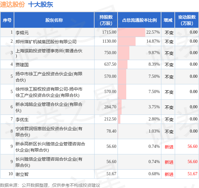 根据速达股份2025年三季报公布的十大股东详情如下: