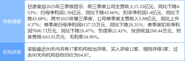 2025年10月30日,华鑫证券研究员孙山山,张倩发布了对甘源食品的研报《公司事件点评报告:营收拐点显现,新品延续渠道导入》,该研报对甘源食品给出“买入”评级。证券之星数据中心根据近三年发布的研报数据计算,该研报作者对此股的盈利预测准确度为77.27%。