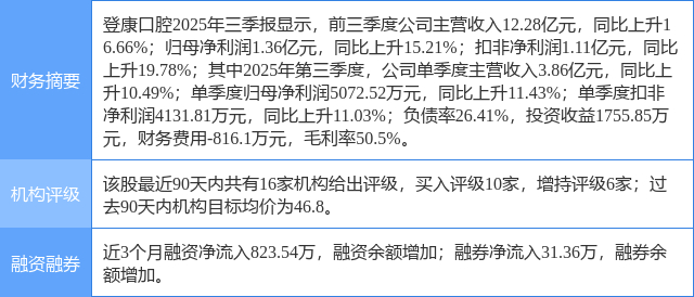 今日登康口腔(001328)涨6.17%,收盘报40.6元。