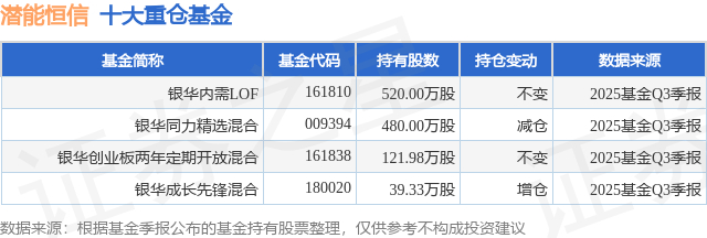 根据2025基金Q3季报公募基金重仓股数据,重仓该股的公募基金共4家,其中持有数量最多的公募基金为银华基金的银华内需LOF。银华内需LOF目前规模为17.2亿元,最新净值4.637(1月15日),较上一交易日上涨1.58%,近一年上涨89.81%。该公募基金现任基金经理为王利刚。王利刚在任的基金产品包括:银华成长先锋混合,管理时间为2019年12月31日至今,期间收益率为39.44%;银华创业板两年定期开放混合,管理时间为2020年8月7日至今,期间收益率为-16.81%;银华同力精选混合,管理时间为2021年4月26日至今,期间收益率为46.36%;