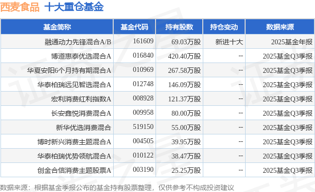 重仓西麦食品的前十大公募基金请见下表: