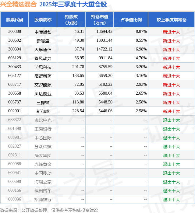 根据2025基金Q3季报公募基金重仓股数据,重仓该股的公募基金共34家,其中持有数量最多的公募基金为兴证全球基金的兴全精选混合。兴全精选混合目前规模为21.08亿元,最新净值3.5336(1月16日),较上一交易日上涨1.55%,近一年上涨46.85%。该公募基金现任基金经理为陈宇。陈宇在任的基金产品包括:兴全合兴混合A,管理时间为2021年1月12日至今,期间收益率为-16.92%。