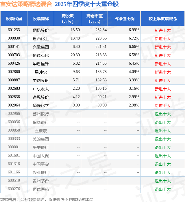 富安达策略精选混合的前十大重仓股如下: