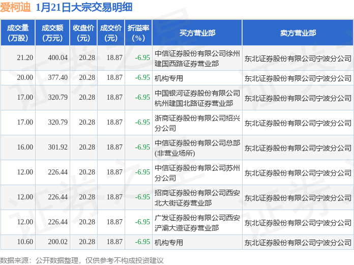 证券之星消息,1月21日爱柯迪发生大宗交易,交易数据如下: