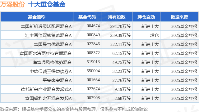 重仓万泽股份的公募基金请见下表: