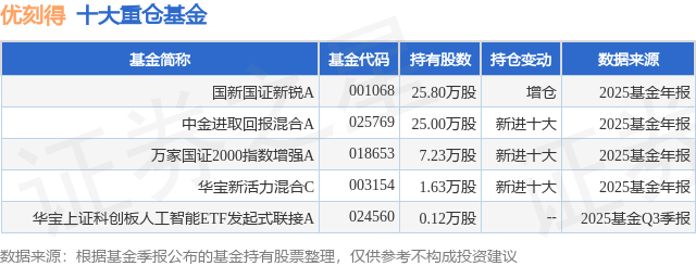 重仓优刻得的公募基金请见下表: