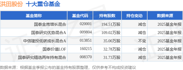 根据2025基金年报公募基金重仓股数据,重仓该股的公募基金共5家,其中持有数量最多的公募基金为国泰基金的国泰金鹰增长混合。国泰金鹰增长混合目前规模为12.22亿元,最新净值1.7637(1月23日),较上一交易日上涨1.32%,近一年上涨58.45%。该公募基金现任基金经理为徐治彪。徐治彪在任的基金产品包括:国泰大健康股票A,管理时间为2017年10月30日至今,期间收益率为74.75%;国泰研究精选两年持有混合,管理时间为2019年12月24日至今,期间收益率为207.73%;国泰价值经典混合(LOF),管理时间为2020年7月24日至今,期间收益率为50.45%。