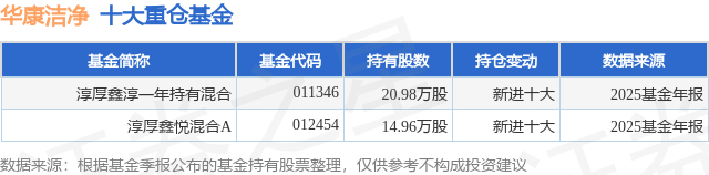 重仓华康洁净的公募基金请见下表: