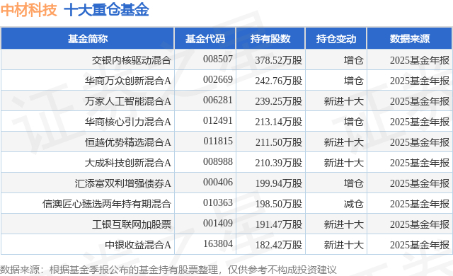 重仓中材科技的前十大公募基金请见下表: