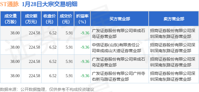 证券之星消息,1月28日ST通脉发生大宗交易,交易数据如下: