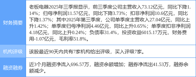 2026年1月27日,中国银河研究员何伟,杨策,刘立思,陆思源发布了对老板电器的研报《厨电国补退坡,公司投资炒菜机器人》,该研报对老板电器给出“买入”评级。研报中预计公司2025-2027年营业收入分别为106/109/111亿元,分别同比-5.2%/+2.2%/+2.4%,归母净利润14.73/15.52/16.31亿元,分别同比-6.6%/+5.4%/+5.1%,EPS分别为1.56/1.64/1.73元每股,当前股价对应P/E分别为13.0/12.4/11.8倍,维持“推荐”评级。证券之星数据中心根据近三年发布的研报数据计算,该研报作者对此股的盈利预测准确度为78.23%。