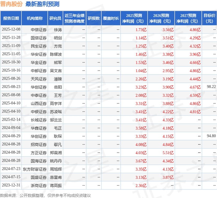 以下是详细的盈利预测信息: