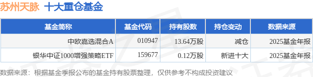 重仓苏州天脉的公募基金请见下表: