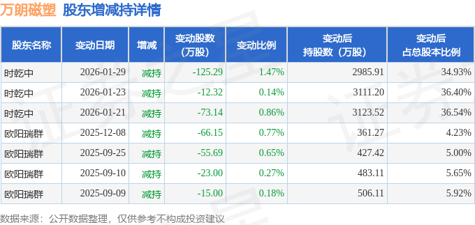该股近半年内有股东持股变动,合计净减持370.59万股,股东增减持明细如下表: