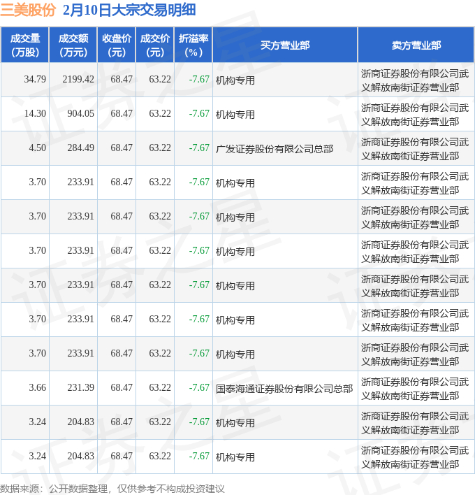 证券之星消息,2月10日三美股份发生大宗交易,交易数据如下: