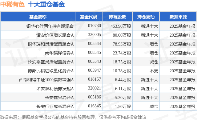 重仓中稀有色的前十大公募基金请见下表: