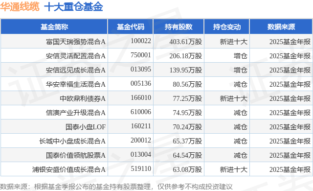 重仓华通线缆的前十大公募基金请见下表: