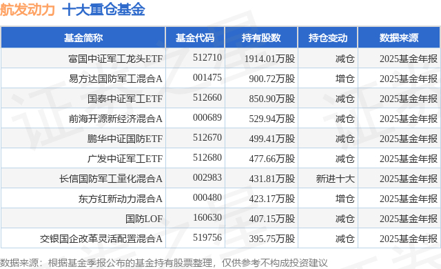 重仓航发动力的前十大公募基金请见下表: