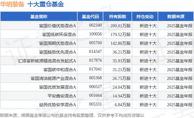 重仓华明装备的前十大公募基金请见下表: