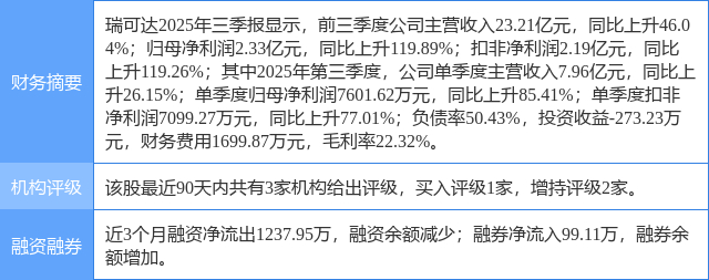 2025年12月28日,中邮证券研究员吴文吉,陈天瑜发布了对瑞可达的研报《连接AI,通信未来》,该研报对瑞可达给出“买入”评级。研报中预计公司2025/2026/2027年分别实现收入30/41/51亿元归母净利润3.0/4.3/5.5亿元,维持“买入”评级。证券之星数据中心根据近三年发布的研报数据计算,该研报作者对此股的盈利预测准确度为73.49%。