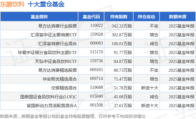 重仓东鹏饮料的前十大公募基金请见下表: