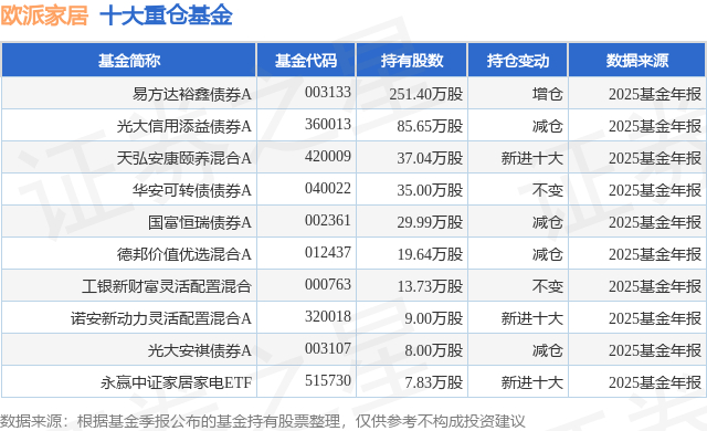 重仓欧派家居的前十大公募基金请见下表: