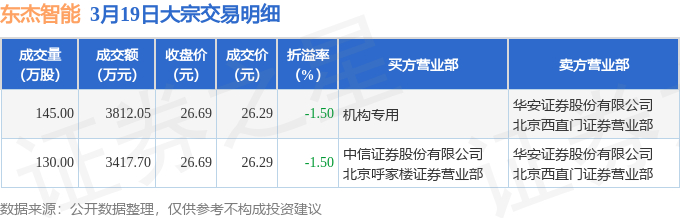 证券之星消息,3月19日东杰智能发生大宗交易,交易数据如下: