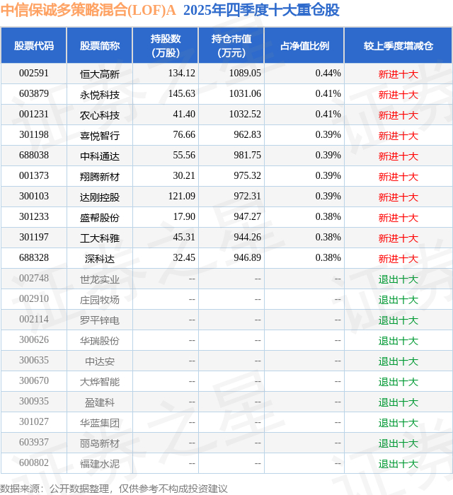 中信保诚多策略混合(LOF)A的前十大重仓股如下: