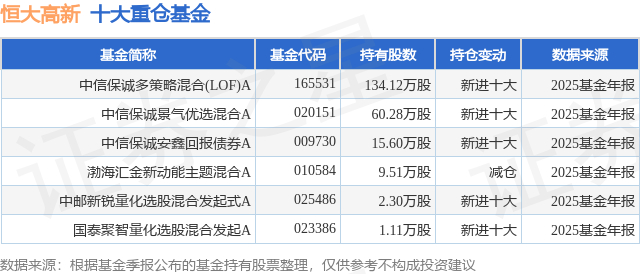 重仓恒大高新的公募基金请见下表: