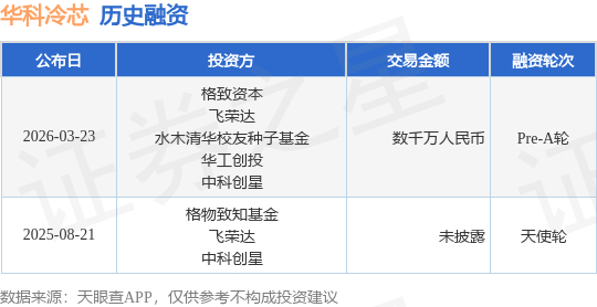 证券之星消息,根据天眼查APP于3月23日公布的信息整理,华科冷芯(上海)动力科技有限公司Pre-A轮融资,融资额数千万人民币,参与投资的机构包括格致资本,飞荣达,水木清华校友种子基金,华工创投,中科创星。