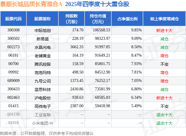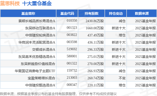 根据2025基金年报公募基金重仓股数据,重仓该股的公募基金共118家,其中持有数量最多的公募基金为景顺长城基金的景顺长城品质长青混合A。景顺长城品质长青混合A目前规模为62.11亿元,最新净值1.6576(3月24日),较上一交易日上涨3.26%,近一年上涨37.01%。该公募基金现任基金经理为农冰立。农冰立在任的基金产品包括:景顺长城北交所精选两年定开混合A,管理时间为2024年8月24日至今,期间收益率为127.93%;景顺长城新兴产业混合A,管理时间为2025年4月1日至今,期间收益率为60.06%;景顺长城成长同行混合,管理时间为2025年6月27日至今,期间收益率为17.42%。