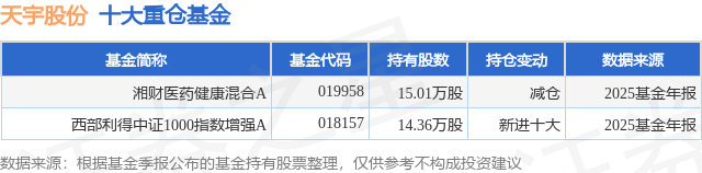 重仓天宇股份的公募基金请见下表: