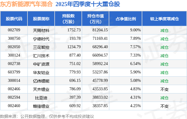 根据2025基金年报公募基金重仓股数据,重仓该股的公募基金共71家,其中持有数量最多的公募基金为东方基金的东方新能源汽车混合。东方新能源汽车混合目前规模为90.19亿元,最新净值3.0843(3月26日),较上一交易日上涨1.13%,近一年上涨45.47%。该公募基金现任基金经理为李瑞。李瑞在任的基金产品包括:东方汽车产业趋势混合A,管理时间为2022年2月9日至今,期间收益率为-2.69%;东方高端制造混合A,管理时间为2023年3月1日至今,期间收益率为-23.28%;东方低碳经济混合A,管理时间为2025年3月4日至今,期间收益率为32.42%。