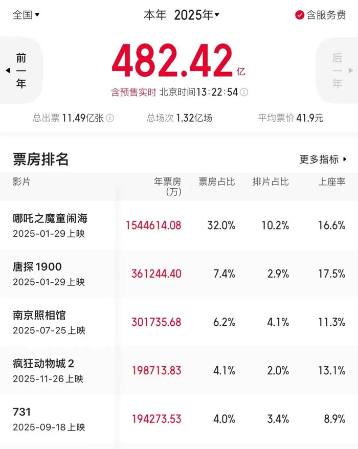 截至目前,《疯狂动物城2》票房已经超越《731》,成为今年票房排名第四的电影,仅次于《哪吒之魔童闹海》《唐探1900》和《南京照相馆》。在该片助力之下,今年电影市场票房已经超过482亿元,距离500亿的票房大关还有不到20亿的差距。