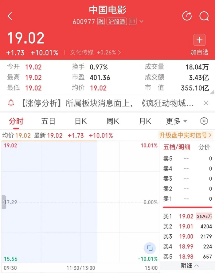 电影票房持续走高也带动着相关概念股大涨。11月28日,午后影视板块震荡走强,中国电影封涨停,金逸影视、幸福蓝海、博纳影业、横店影视跟涨;12月1日,中国电影一字涨停,幸福蓝海一度大涨超13%,奥飞娱乐、华谊兄弟、光线传媒、横店影视等跟涨。