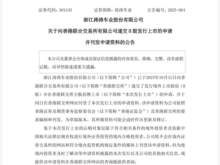 对此,涛涛车业方面回应称,赴港上市是为拓宽融资渠道、深化全球化布局。