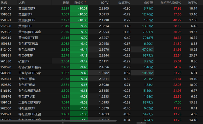 “此次调整是短期多重因素共同作用下的获利回吐与情绪宣泄,并非长期趋势转向,预计整体不会出现持续深度回调。”尚艺基金总经理王峥告诉记者,隔夜国际贵金属价格大幅回落,直接引发A股有色板块的资金出逃,叠加前期累积的大量获利盘在外部利空刺激下集中了结,从而进一步加剧了短期调整幅度。
