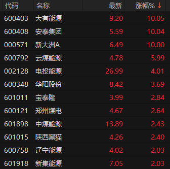 煤炭板块本周表现活跃,申万煤炭指数早盘上涨1.07%,安泰集团、大有能源、新大洲A收获涨停。其中,安泰集团录得两连板。