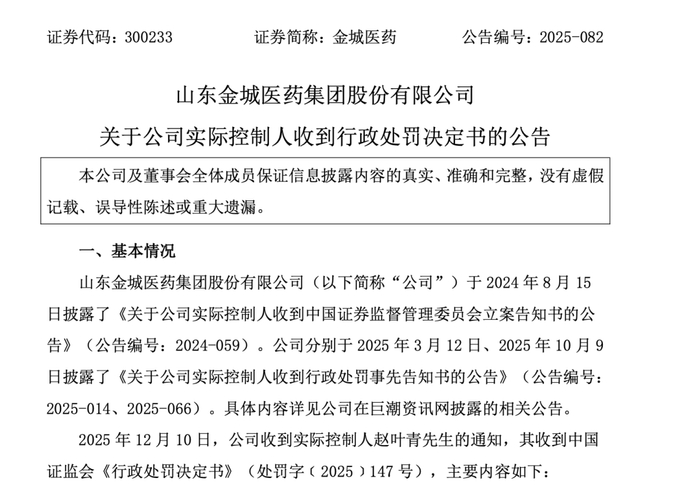 日前,金城医药接连发布两则公告:公司董事长赵叶青因主导长达近三年的股票操纵行为,被中国证监会罚款150万元并实施4年市场禁入措施。同时,公司表示,赵叶青已于当日提交书面辞职报告,正式辞去公司所有职务。